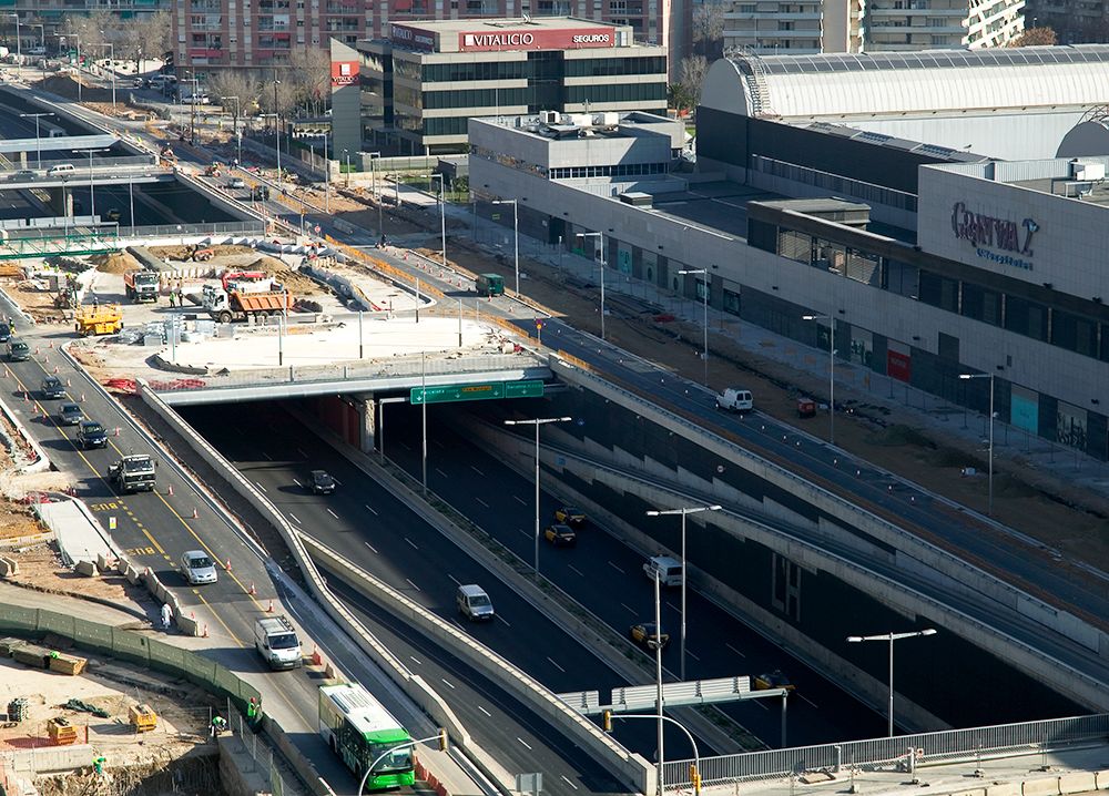Construcción de la nueva Gran Vía, entre las calles Escultura y Miguel Hernández, L'Hospitalet de Llobregat