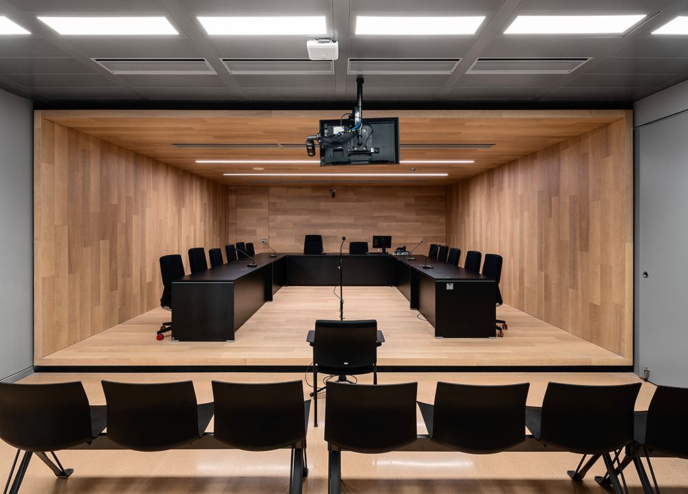 Construcción de un edificio judical de Tortosa, el edificio tiene una distribución en cuatro plantas, planta baja más 3 y torreón, ocupa una parcela de 852 m², y tendrá una superficie construida de 3.467,38 m², se resuelve con dos núcleos de comunicaciones verticales: uno central destinado al público en general y uno en el extremo oeste del solar destinado a las comunicaciones internas de funcionarios.