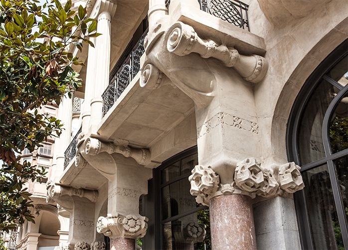 Domènech i Muntaner utilizó en esta casa muchos de sus elementos característicos como arquitecto: base de robustas columnas en piedra roja, ventanas trilobulares y ornamentación floral. El conjunto denota una gran contención expresiva, favorecida por el mármol y euritmia de las dos fachadas principales organizadas alrededor de una tribuna corrida que a partir de la primera planta esta torneada como una torre hasta la coronación del edificio; la posterior es insólitamente plana.