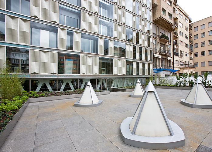 Rehabilitación del edificio Banca Catalana para hotel, fachadas principal y posterior catalogadas como Patrimonio. Se cambia el uso de las actuales oficinas (antiguo edificio de Banca Catalana, de construcción de finales de años 60) por edificio de Hotel de 4 estrellas.