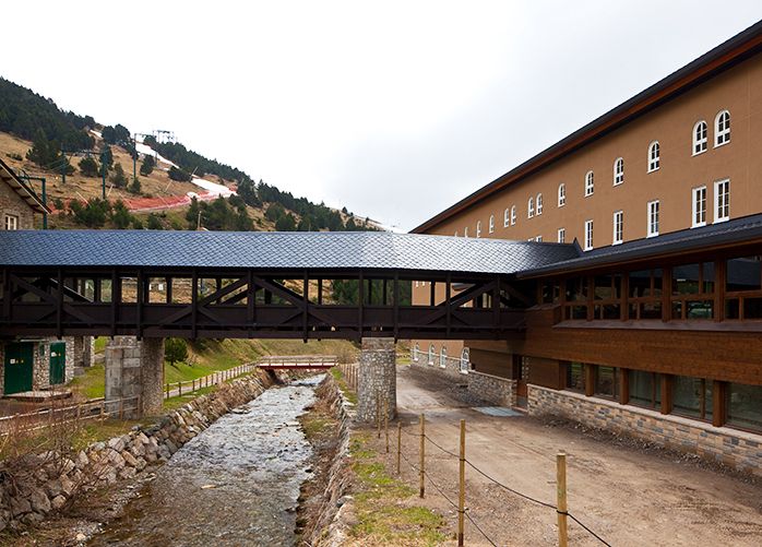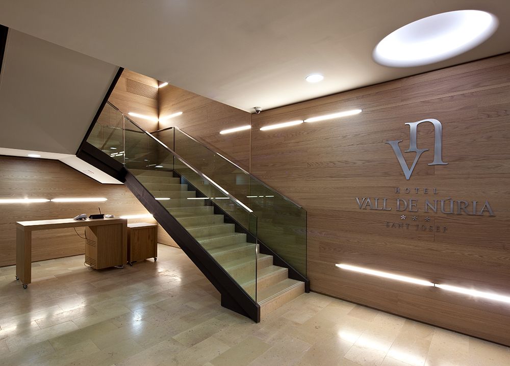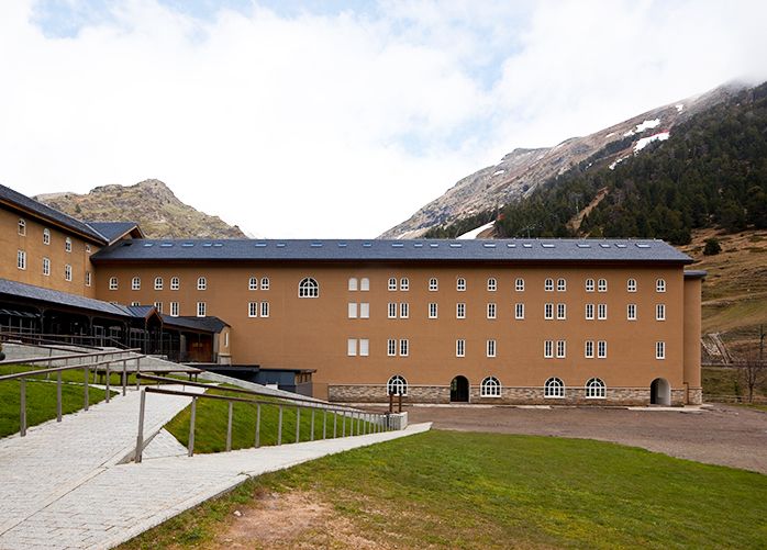El Hotel Vall de Núria se situa en el corazón de los Pirineos catalanes, en un entorno privilegiado rodeado de cimas que rozan los 3.000 m. de altura. Es un hotel de alta montaña de 3 estrellas situado a los pies de una estación de ski y equipado con todas las comodidades de un complejo turístico. La restauración del edificio Sant Josep se ha llevado a cabo conservando su exterior e integrándolo totalmente en un entorno natural. Este edificio innovador, ganador del premio GreenBuilding de sostenibilidad de la UE, ha sido diseñado con criterios de máxima cualificación en eficiencia energética.