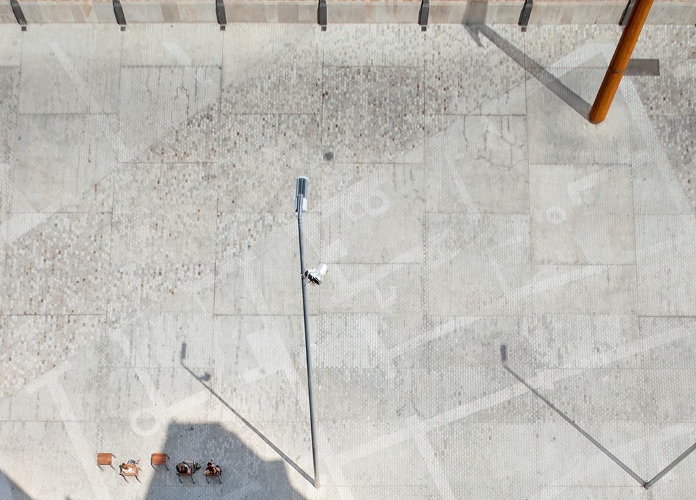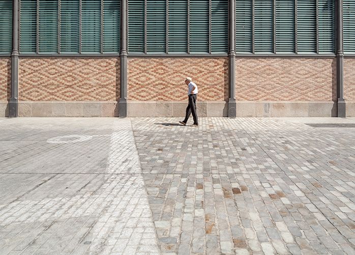 - Establecer un vínculo con la ciudad histórica presente dentro del edificio del antiguo Mercado con una composición de pavimentos que reproducen el trazado de las antiguas calles, relaciona el espacio con el equipamiento e invita a entrar y participar a la vivencia histórica que supone ver unos yacimientos descubiertos dentro del edificio.